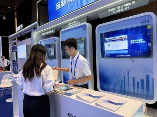 (图为中国银行河北雄安分行客户经理为参展企业讲解金融产品 冯伟鑫/摄)