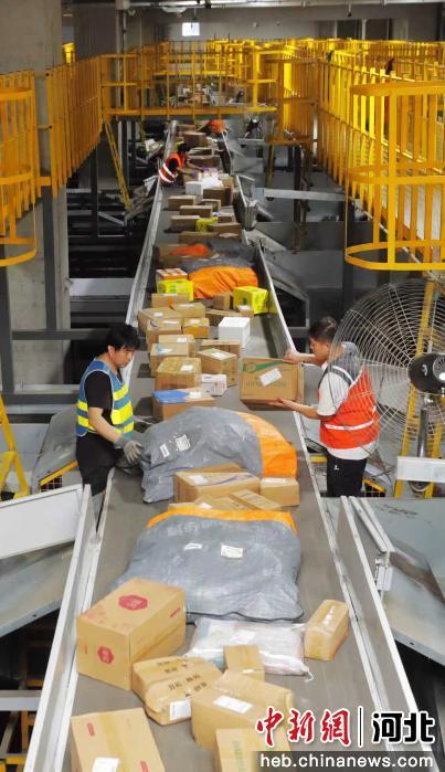 图为廊坊申通快递快件进港场景。 廊坊市委宣传部供图