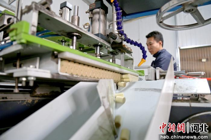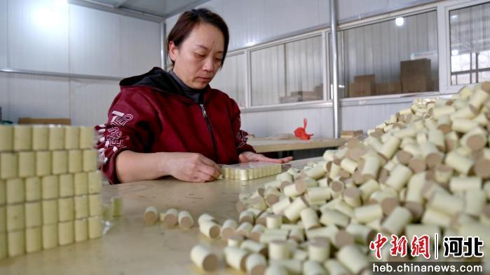 中新网河北新闻12月1日电 (王天译 郭江鹏)12月1日,在河北省邯郸市馆陶县河北常艾坊生物科技有限公司内,工作人员正有序进行艾条制作、直播推广等工作,各类艾产品经线上线下双渠道销往全国各地。