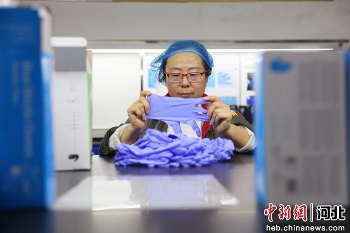 图为在南宫市经济开发区一家医疗科技有限公司,工人在车间对产品进行质检。 田威 摄