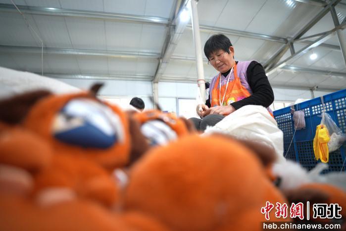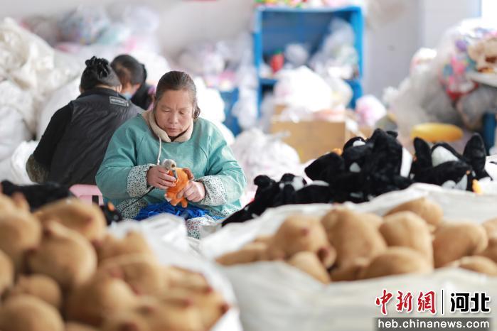 图为内丘县一家毛绒玩具企业的工人在车间加工毛绒玩具。 刘继东 摄