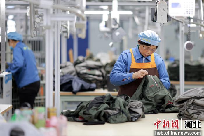 中新网河北新闻1月9日电(张鹏翔 刘继东 田娇娇)9日,走进位于河北省邢台市内丘县工业园区的华飞制衣车间,工人们正在自动化裁剪机、智能缝纫机等设备前熟练操作,经过裁剪、编号、缝制、锁边、检验等工序,一件件做工精良的服装即将出口国外市场。
