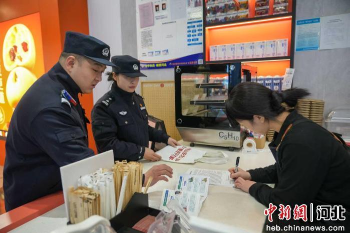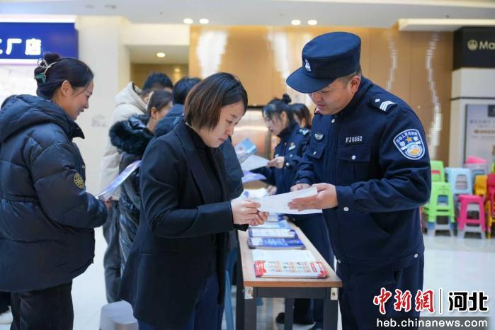 中新网河北新闻12月15日电 (陈子康)15日上午,在河北省沧州任丘市一商场内,工作人员正在宣传防诈反诈知识。