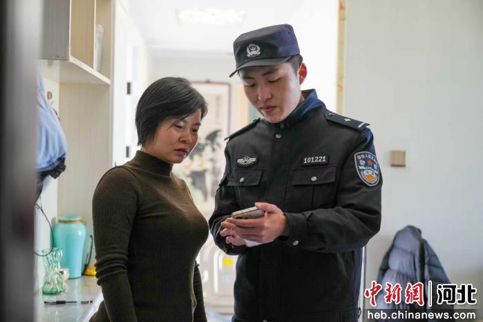 图为任丘市油建路街道一住户家中,工作人员帮助居民安装反诈APP。 张丹丹 摄