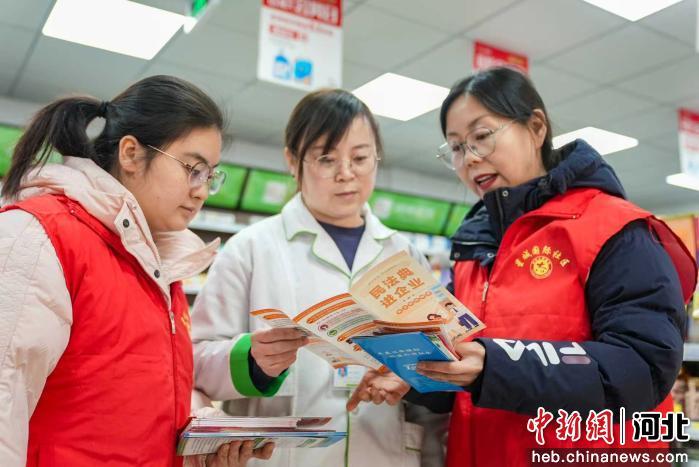 图为社区“法律明白人”到辖区药房等企业、单位开展法律知识宣传。 王倩倩 摄