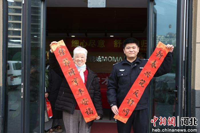 中新网河北新闻2月5日电 (王鹏 严颖 刘妹)日前,河北省衡水市公安局高新技术产业开发区分局新型网络犯罪侦查中队民辅警联合辖区一小区,巧思策划了“迎新春、写春联、反电诈、进万家”主题活动。一副副特别的春联不仅有传统的吉祥话,而且将反诈口诀融于笔墨丹青之中。