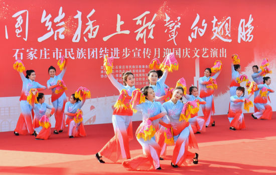 9月29日,“让团结插上歌声的翅膀”民族团结进步宣传月专题文艺演出在中共中央统战部旧址所在地——河北省石家庄市平山县岗南镇李家庄村举行。 中新社记者 韩冰 摄