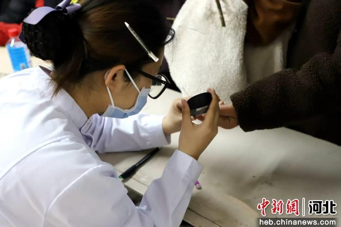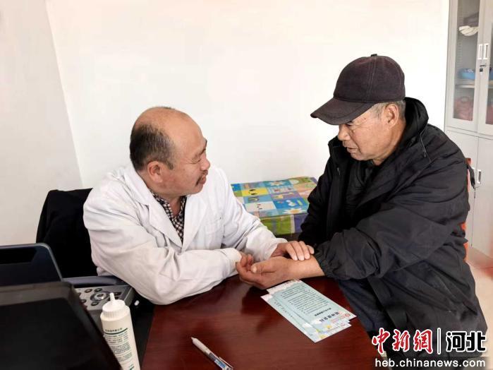 图为泊头市王武镇卫生院医务人员为村民号脉问诊。 陈玲玲 摄