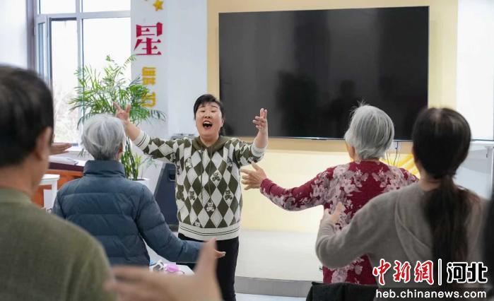 图为志愿者正在带领居民排练节目。 王倩倩 摄