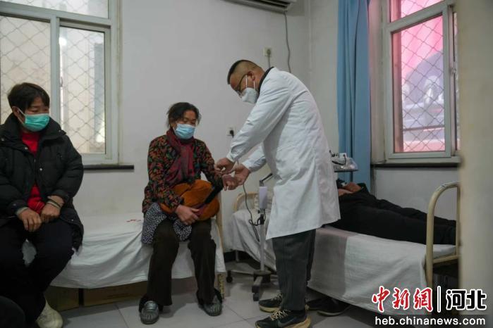 中新网河北新闻12月29日电(陈子康)29日上午,在河北省沧州任丘市石门桥镇一居民家中,家庭医生团队正在为老人进行体检。