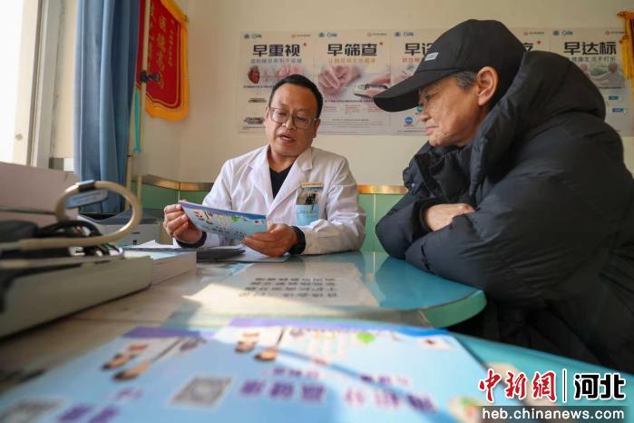 图为任丘市石门桥镇一村卫生室,医务人员为居民讲解家庭医生签约服务内容。 张子良 摄