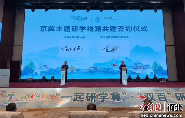 活动现场,展示了《保定“太行步趣”研学实践教育活动纪实》精彩瞬间,保定市研学旅游资源库、保定市研学精品线路和保定市智慧文旅新场景发布,北京校外教育协会与河北省研学实践教育学会举行“京冀主题研学线路共建签约仪式”。莲池书院博物馆、中国古动物馆(保定自然博物馆)、冉庄地道战纪念馆、曲阳陈氏定窑瓷业有限公司成功入选首批“京冀研学新地图资源单位”并授牌,“山河四省”研学旅游进保定、京津冀百家研学机构进保定、京津冀百名校长进保定活动同步启动。