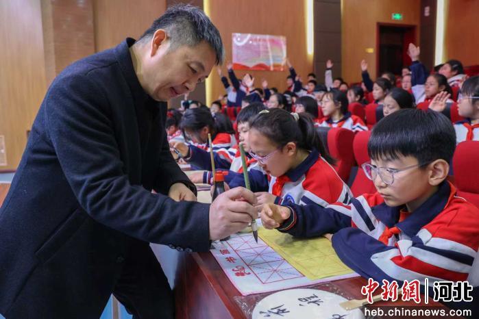 中新网河北新闻11月19日电 (韩艳萍)18日下午,在河北省邯郸市邯山区实验小学,由邯山区文联组织的“春苗行动”文艺志愿者下基层活动正在进行,100余名学生沉浸在集知识性、艺术性于一体的文化公益体验中,在了解汉字文化、规范汉字书写、参与知识竞猜、学习书法技艺中,感受中华优秀传统文化的魅力。
