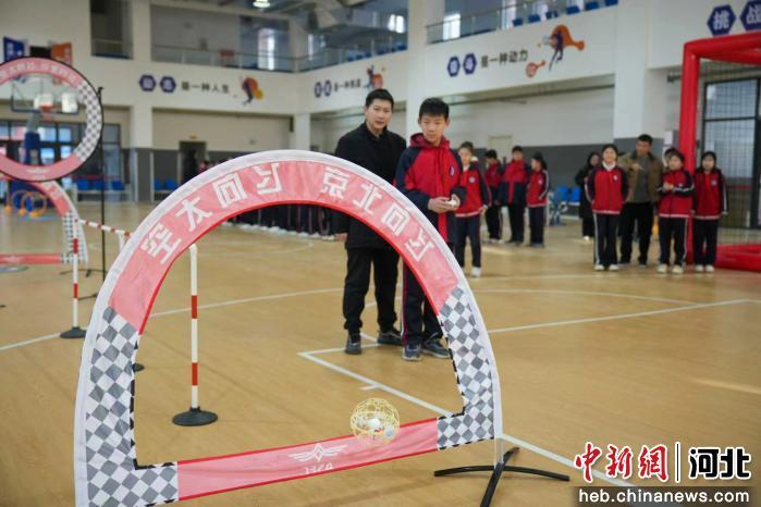 图为任丘市第九实验小学,学生正在操控无人机。 韩慧峰 摄