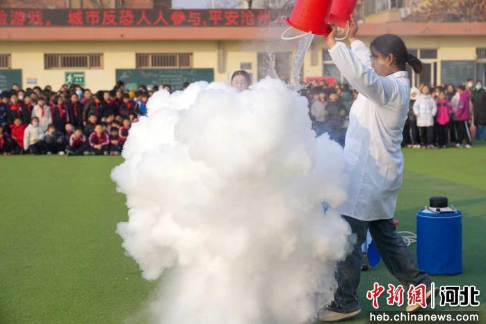 图为任丘市实验小学,学生参与科学实验。 韩慧峰 摄
