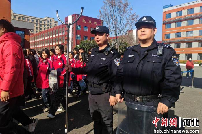 图为在馆陶县第一中学门口,学校保安守护学生放学。 吴子献 摄