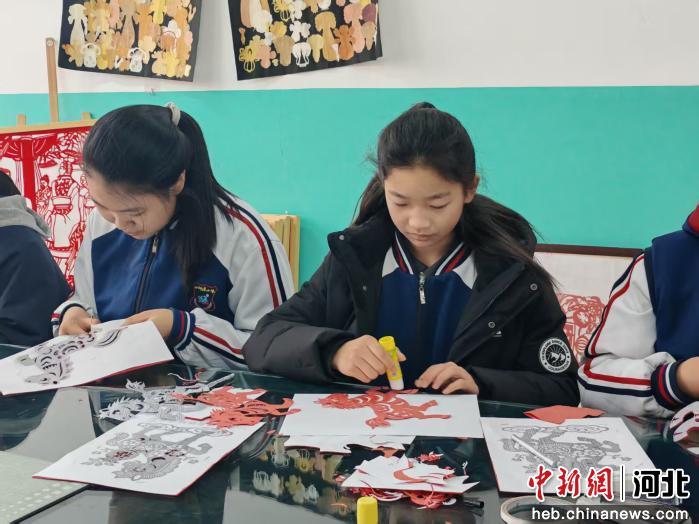图为学生在学剪纸。 李硕 摄