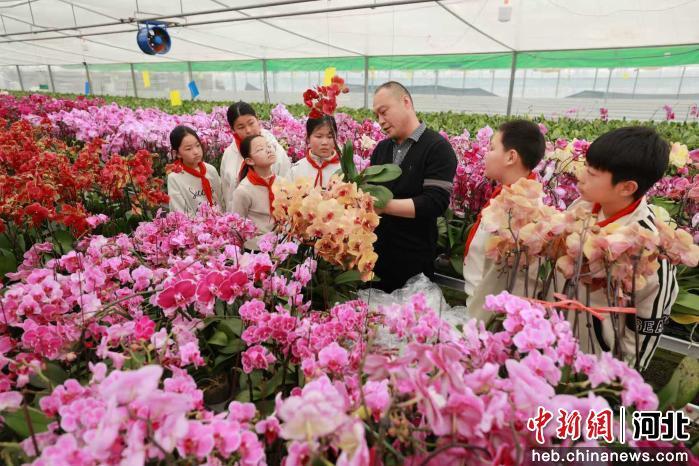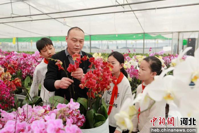 图为内丘县金店中心小学学生在观赏蝴蝶兰。 刘继东 摄