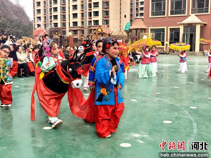 中新网河北新闻3月17日电 (袁宝利 杨喜)17日,承德市宽城满族自治县第四幼儿园操场上欢声笑语、热闹非凡,一场以“非遗润童心·亲子共传承”为主题的传统民俗展演活动正式启幕。