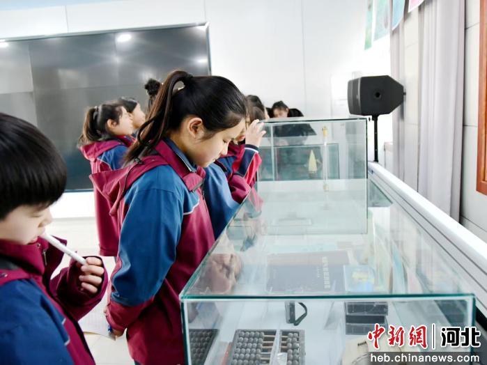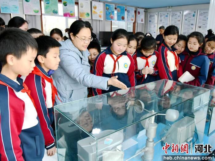 图为鸡泽县学生正在参观气象科普馆。 张信波 摄