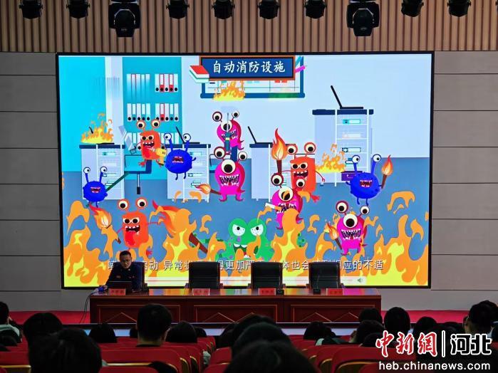 图为鸡泽县消防救援人员正在给学生们讲解自动消防设施。 苑卉鑫 摄