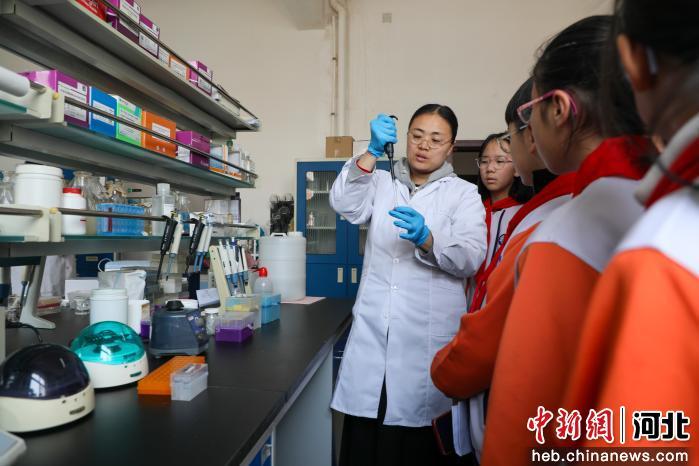 工作人员为学生们讲解分子生物学知识。 母东莹 摄