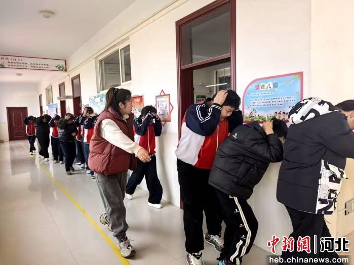 图为泊头市营子镇桑庄小学开展地震避险演练。 王明霞 摄