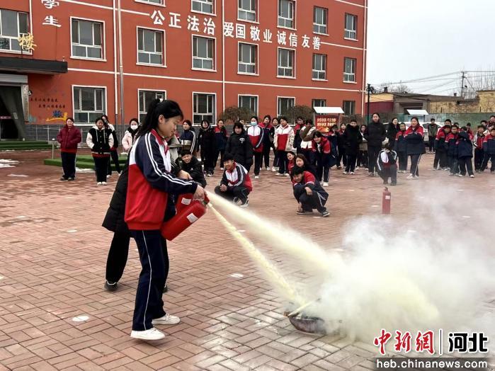 图为泊头市洼里王中学学生进行灭火器实操演练。 王雪 摄