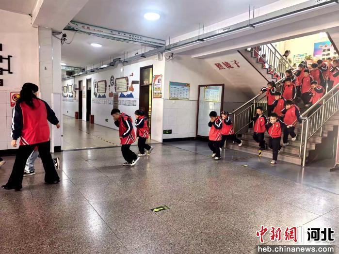 图为泊头市河东大小学组织火灾逃生演练。 周丽静 摄