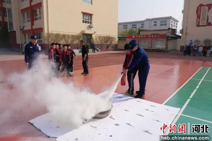 图为任丘市实验小学,学生进行灭火器实操。 刘禧龙 摄