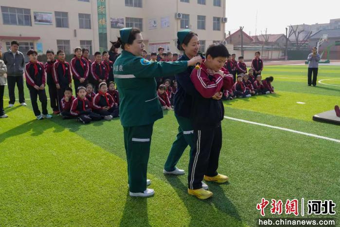 中新网河北新闻3月27日电 (陈子康)27日上午,在河北省沧州任丘市实验小学,学生们正在学习自救互救相关知识。