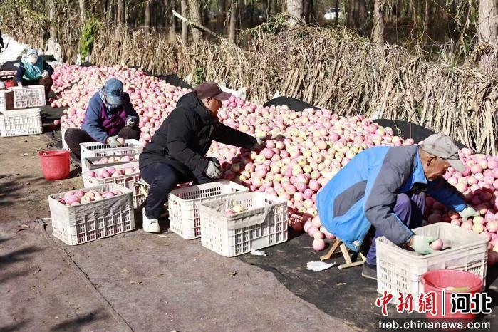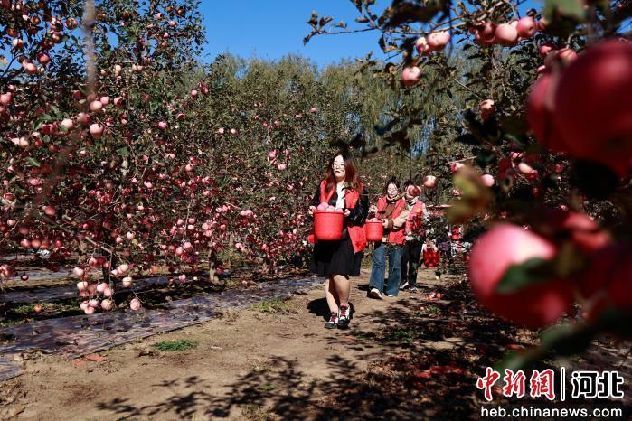 中新网河北新闻10月22日电 (冯庆亚 朱文斌)21日,在秦皇岛北戴河新区团林管理处小庄子村的果园里,一抹抹鲜亮的“志愿红”穿梭其间,志愿者们忙着帮果农采摘、分拣、搬运,一派热闹的丰收景象。