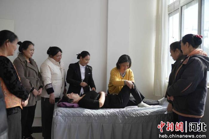 图为任丘市一家政培训基地,学员正在实操老年护理技能。 韩慧峰 摄