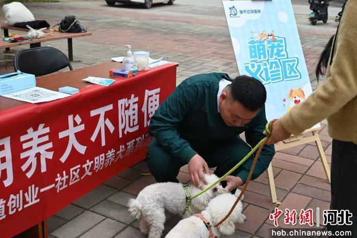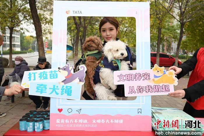 图为任丘市会战道街道一社区,开展“文明养宠”主题活动。 郭诗华 摄