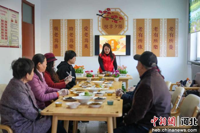 图为任丘市油建路街道建一社区正在组织老人制作重阳糕。 韩慧峰 摄