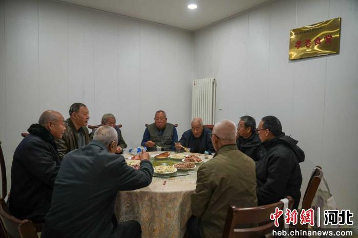 图为任丘市中华路街道五街村组织为老人包饺子,老年居民正在孝老食堂就餐。 韩慧峰 摄