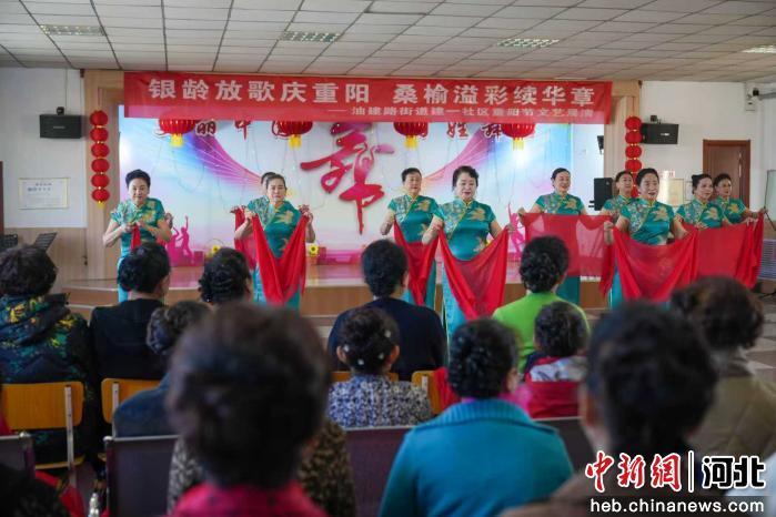 中新网河北新闻10月28日电 (尹航)在重阳节来临之际,28日上午,在河北省沧州任丘市油建路街道建一社区,老年居民正在观看文艺演出。