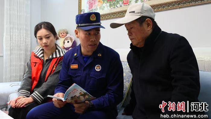 图为消防救援大队宣传员入户讲解消防安全知识。 赵宇 摄