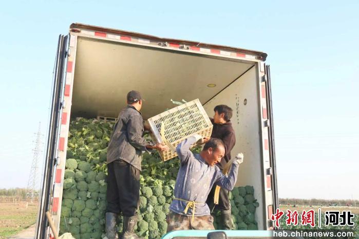 图为工人在冷藏货车内整理西蓝花。 安小龙 摄