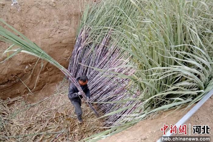 中新网河北新闻11月20日电 (王天译 郭江鹏)20日上午,在河北省邯郸市馆陶县魏僧寨镇王草厂村的上百亩甘蔗地里,农户们忙着收割、存放甘蔗。