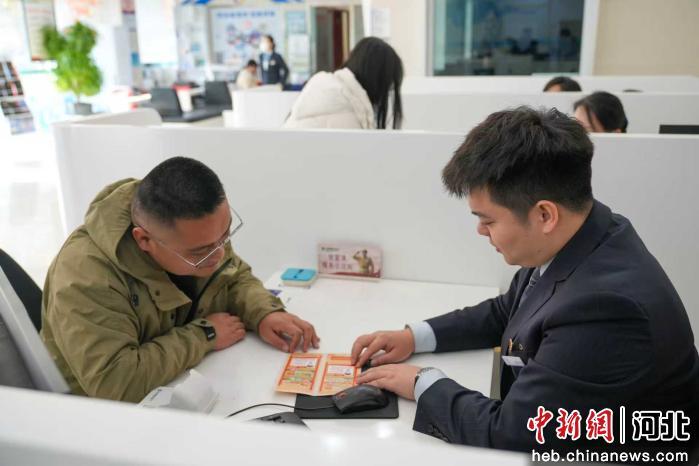 图为任丘市一银行,工作人员正在为青年介绍创业贷款内容。 韩慧峰 摄