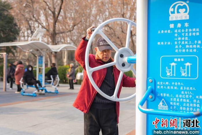 中新网河北新闻12月30日电 (王天译 王倩倩)跳舞、踢毽子、推健腹轮……30日一大早,河北省邯郸市丛台区的体育主题公园、口袋公园及各大公园健身功能区里,居民们身着轻便运动装,在晨光中开启健身时间。