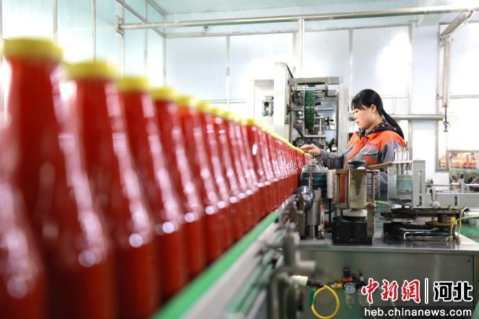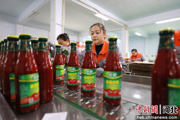 在内丘县一家食品调味企业的自动生产线上,工人们忙着验盖、装箱、封条、搬运,全力保障市场供应。