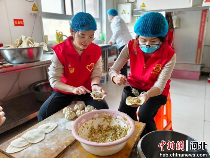 图为志愿者在为老人包包子。 贺蒙 摄