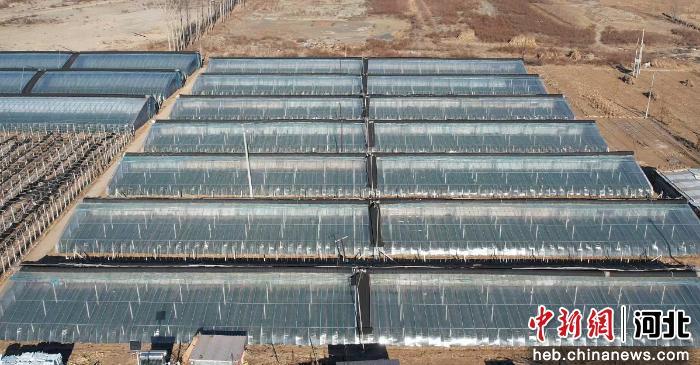 图为航拍草莓大棚。(无人机照片) 金明伟 摄