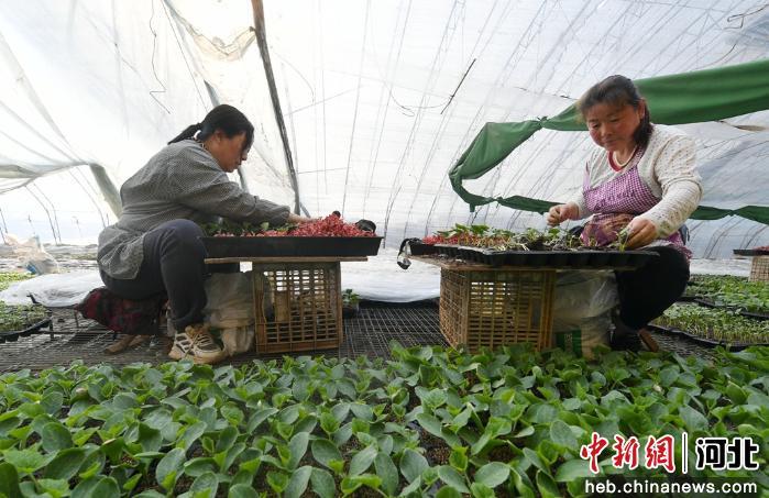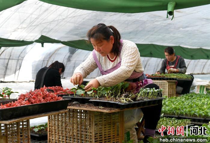 中新网河北新闻1月9日电 (崔志平 苗凤强 崔贤飞)近日,走进河北省衡水市阜城县漫河镇许家铺村一温室大棚内,一排排的育苗台上绿油油的瓜苗长势喜人,村民们正忙着进行育苗嫁接工作。