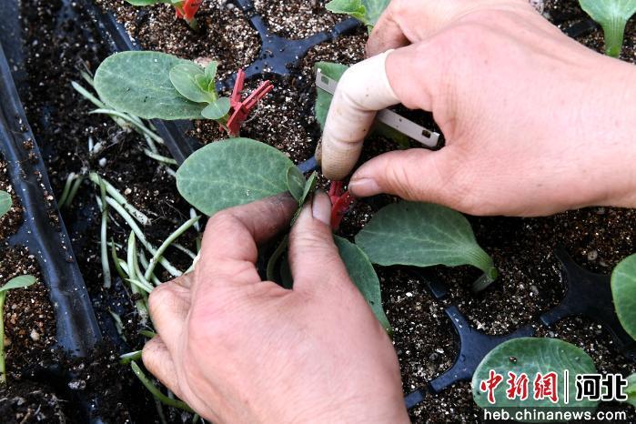 村民正在嫁接瓜苗。 崔贤飞 摄