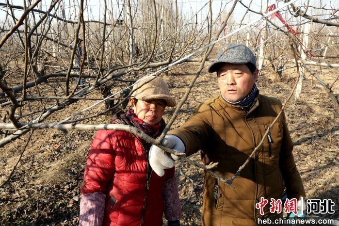 图为农技人员在田间指导剪枝技术。 董栋 摄