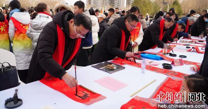 中新网河北新闻1月30日电(樊子良)1月29日,张家口蔚县举行楹联书春文明实践活动。该活动由蔚县县委宣传部主办,县文学艺术界联合会、县书法家协会、县美术家协会承办,吸引了不少周边群众参加。(完)