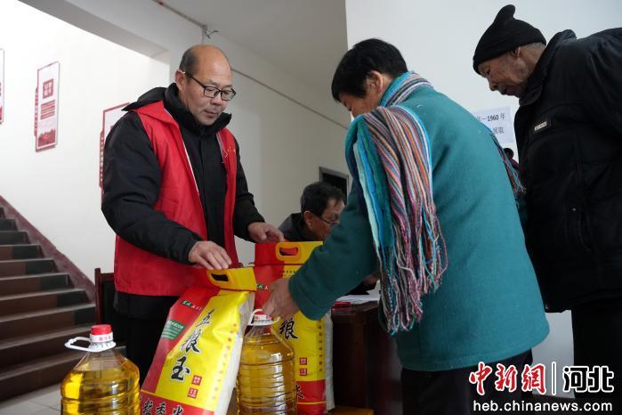 中新网河北新闻1月30日电(潘志方 张冬茹)1月27日,河北省隆尧县东良镇大市口村村委会内暖意融融。阳光义工志愿者们身着统一的志愿者马甲,正有条不紊地为村里六十岁以上老人分装大米和食用油,场面温暖而热闹。